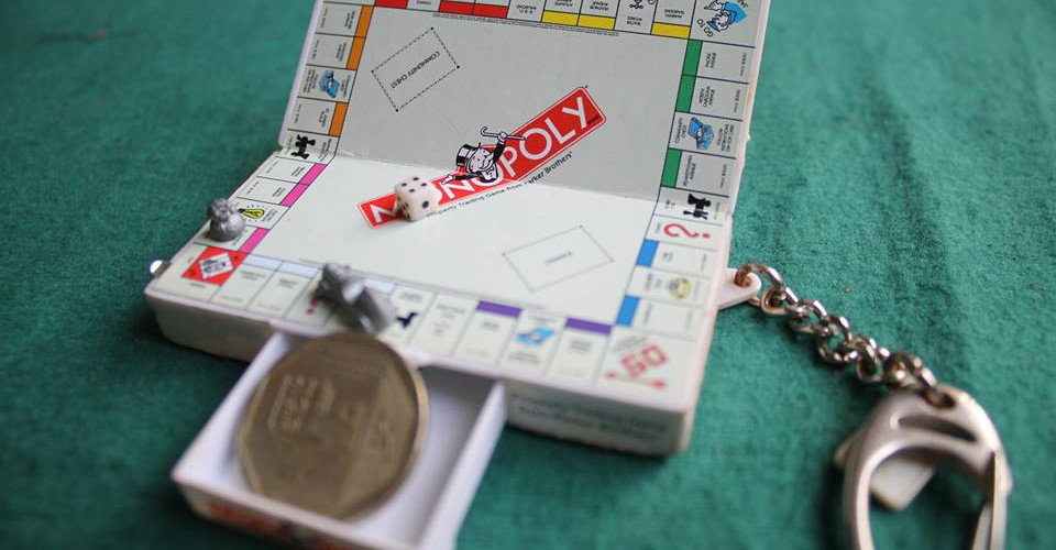 Encontramos hace algunos meses, entre los estantes de cajas y más, un diminuto envoltorio que dentro de ella guardaba quien sabe quien; este jueguito del Monopolio. Un poco más grande que una moneda, y que dentro de ella quedaba espacio para contener un par de dos fichas en miniatura (zapato y plancha) junto al dado quizás más pequeño del mundo, bueno bueno, quizás exageré un poquito pero de ser inusual en su tamaño también lo es en su diseño adaptado para llevarlo de vaciones o a cualquier lugar como un llavero. No sabemos a quien perteneció, solo lo encontramos dentro de las instalaciones del Centro Cultural Crescendo, ¿habrá tenido dinero o tarjetas?
